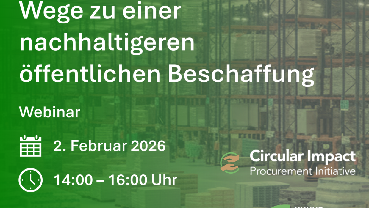 Dieses Webinar zeigt praxisnah, wie Verwaltungen ihre Beschaffung konsequent nachhaltiger gestalten und dabei gleichzeitig gesellschaftliche Wirkung entfalten können. Im Mittelpunkt stehen kompakt vermitteltes Grundlagenwissen, einfach umzusetzende Handlungsoptionen und inspirierende Best-Practice-Beispiele, die Lust auf Umsetzung machen.